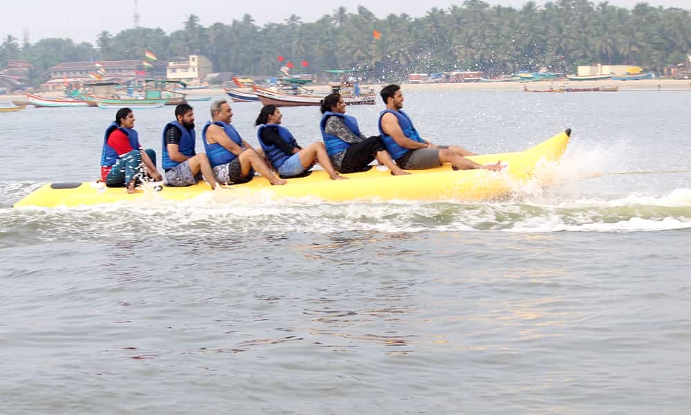 Enjoy a fun-filled group adventure! Hold tight as your inflatable banana-shaped boat bounces and glides across the waves, pulled by …